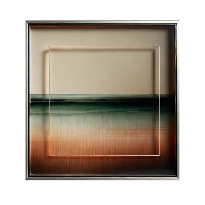 Questa opera è stata commissionata da una psicologa che desiderava un pezzo per il suo studio, uno spazio dove i pazienti potessero trovare tranquillità e riflessione. Il cliente cercava qualcosa che trasmettesse calma e introspezione, in sostituzione di un quadro precedente ritenuto troppo caotico. Le tonalità calde e rilassanti del tramonto, combinate con sfumature verdi, evocano un equilibrio tra mente e natura. Un quadrato trasparente simboleggia una "finestra mentale", invitando l'osservatore a esplorare il proprio mondo interiore.